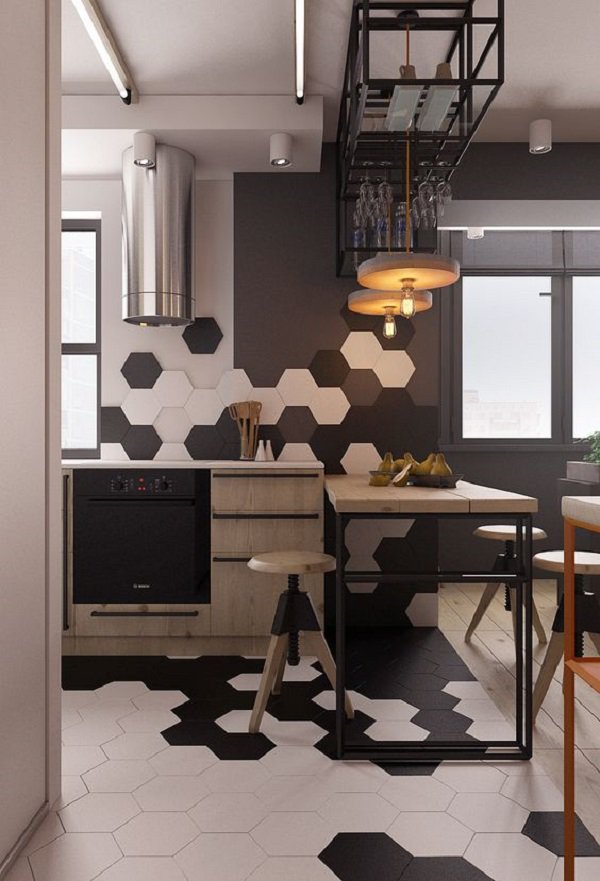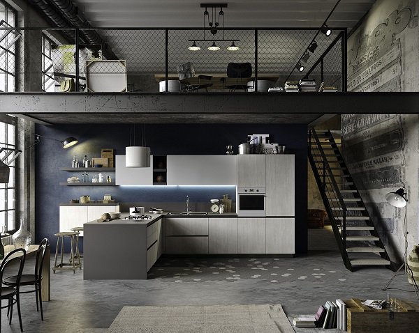 The gray color and black details are one more characteristic of the industrial style.